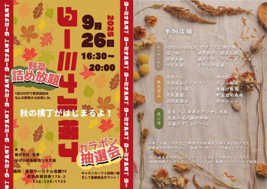 9月のターミナル横丁は今回も大好評のお野菜詰め放題と